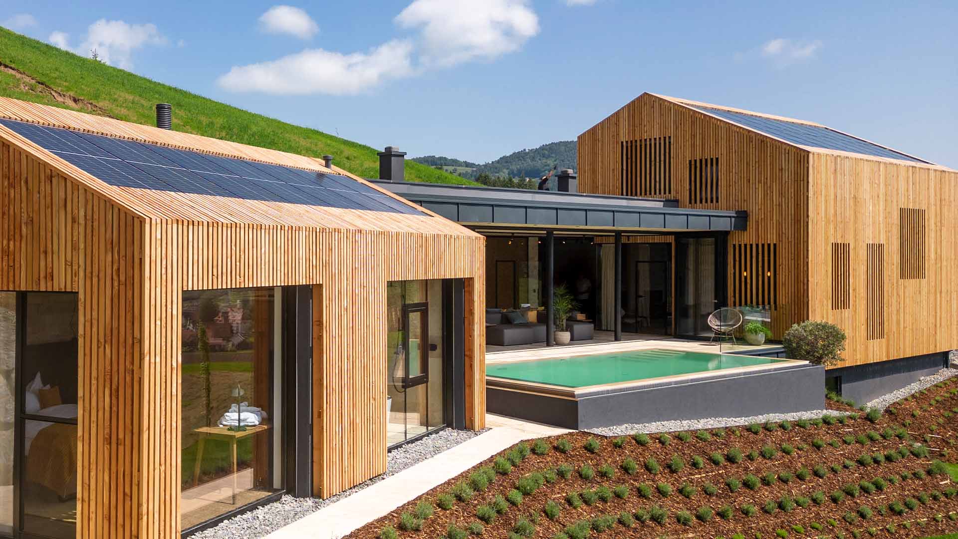 Heilsamer Balsam für die Augen und eine direkte Breitbandverbindung zum Gemüt: Der Ausblick über die typischen Süd- und Weststeirischen Hügellandschaften kann weit mehr, als sich auf einem Foto verewigen lässt. Ein transformatives Erlebnis, um welches wir euch ein ganzes Haus gebaut haben.